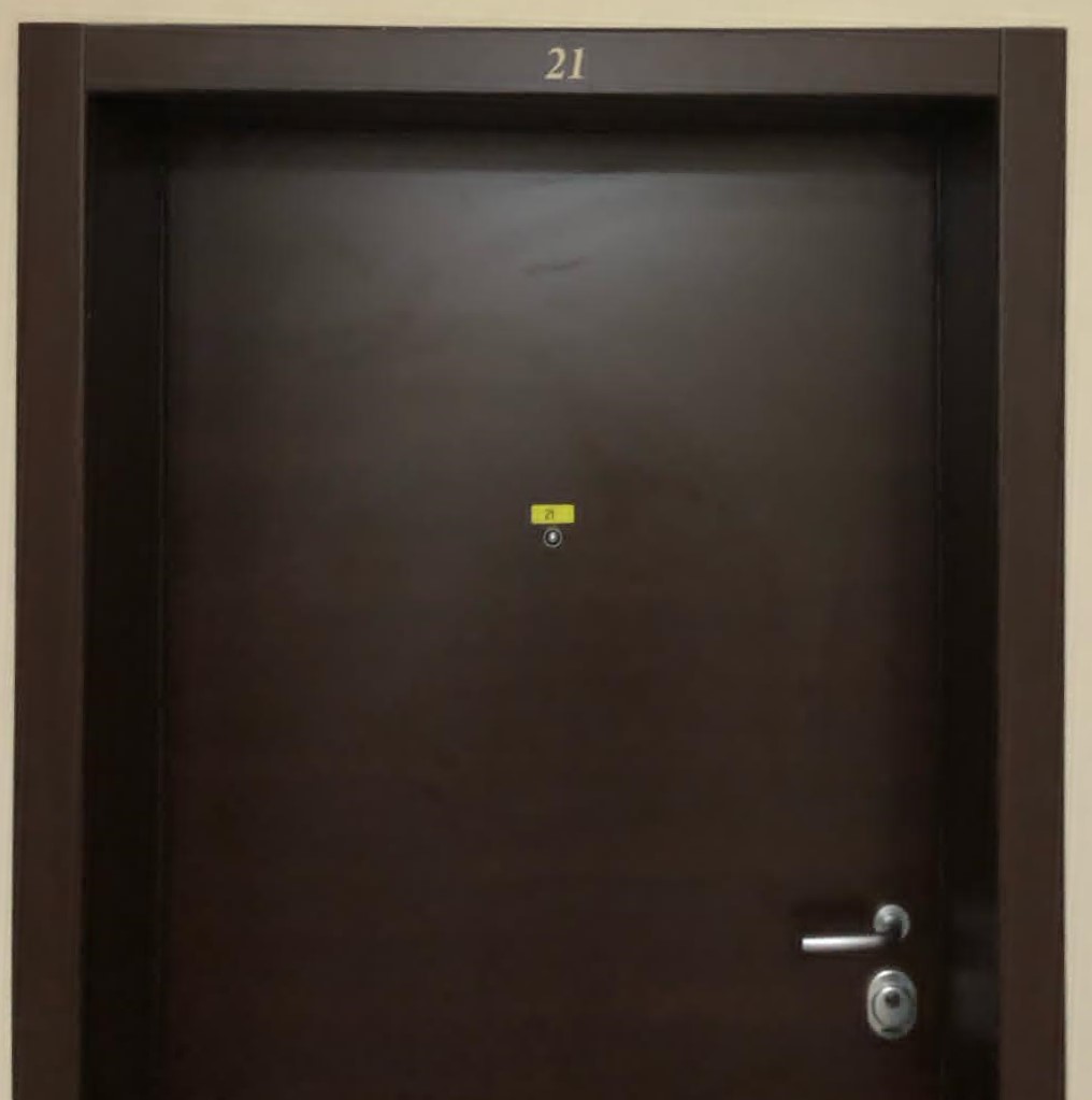 6. You have to walk right and the apartment door is in the end of the of the hallway.